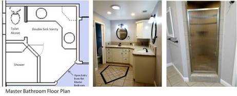 Kellogg Concepts designed a complete remodel of an existing Master Bathroom to provide a new up-scale layout and finishes. The existing Bathroom was completed in 1990 with an open plan entry from the Master Bedroom, L shaped vanity with ceramic tile countertop, and mission style all-tile shower enclosure.